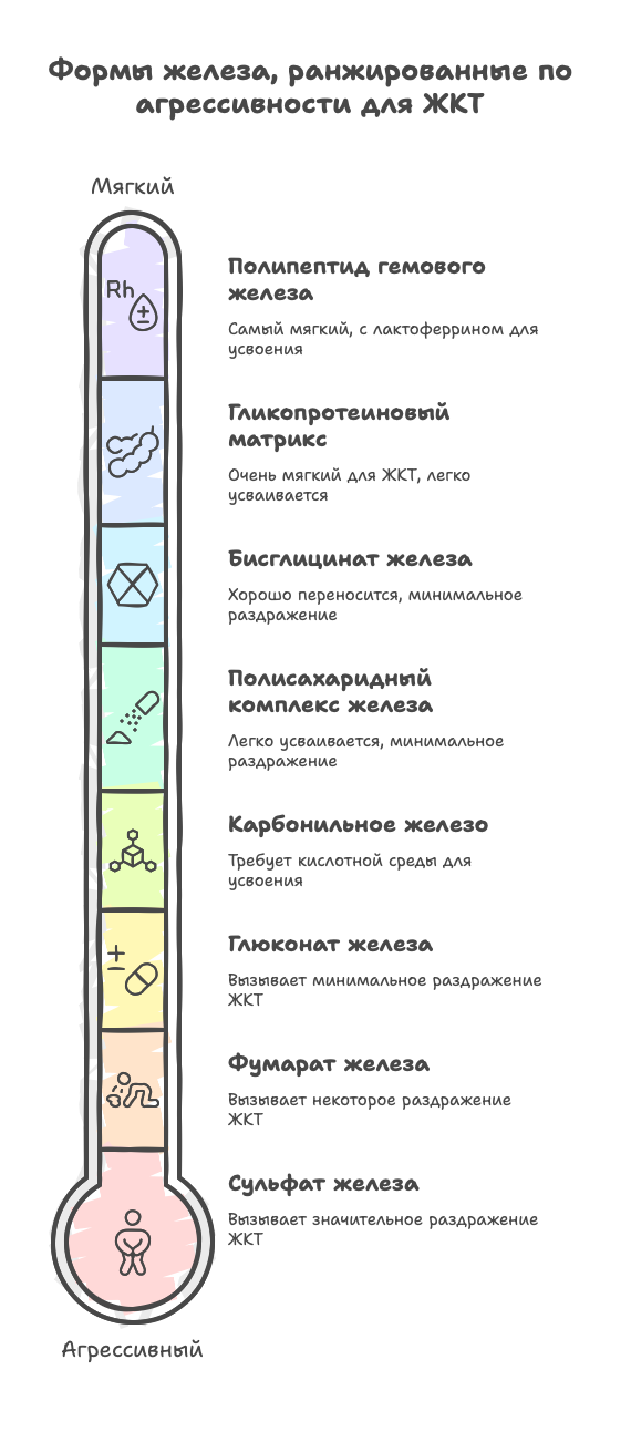 Если вы испытываете желудочно-кишечный дискомфорт от стандартных форм железа, я настоятельно рекомендую переход на бисглицинат железа или железо-гликопротеиновый матрикс из-за их способности обходить раздражение слизистой. Это стратегия с умеренными затратами, но высокой отдачей для смягчения рисков.