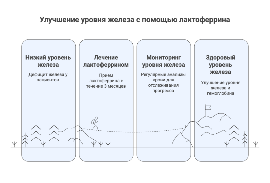 Исследования лактоферрина показывают впечатляющие результаты, особенно у детей и беременных женщин. С одной стороны, египетские исследования демонстрируют драматическое снижение побочных эффектов. С другой стороны, кенийское исследование показало, что голо-лактоферрин (насыщенная железом форма) не превосходит обычный сульфат железа.